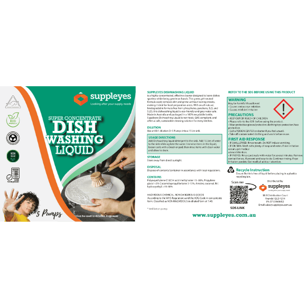 Suppleyes Super Concentrate Dishwashing Liquid Label