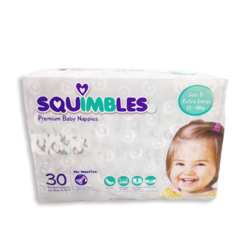 - Give your baby the best with Squimbles Nappies X Large Size 5 Pack 30, a reliable and trusted choice for quality, comfort, and protection.