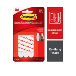 - Command Refill Strips 17021P Medium are designed for use with Command hooks, clips, and strips to hang and organize various items without the need for nails or tools.