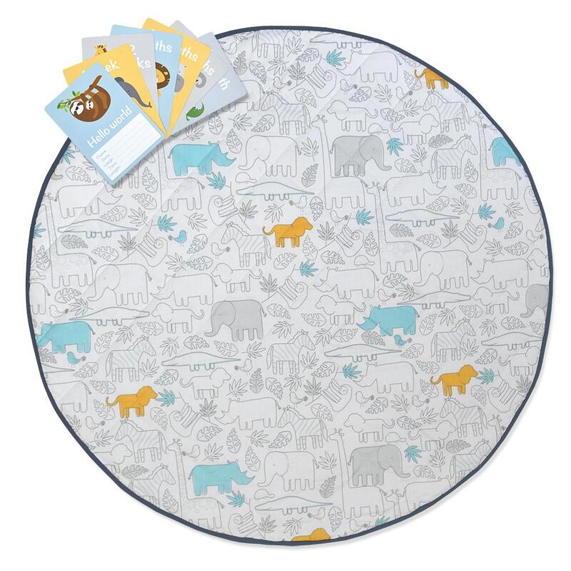 Capture special moments while creating a soft and engaging play space with the Play Mat with Milestone Card Round – Urban Safari.