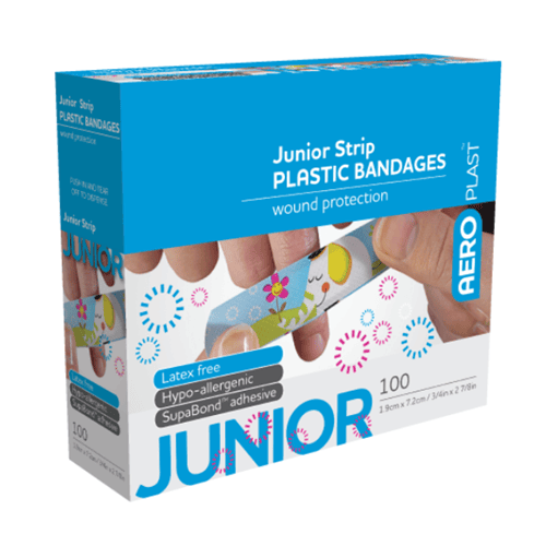 AEROPLAST Plastic Junior Strip 7.2 x 1.9cm Box /100