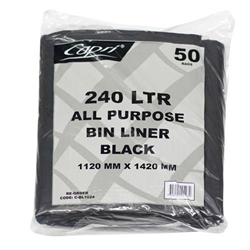 Bin Liners Flat Pack Black 240 Litres Pack 50