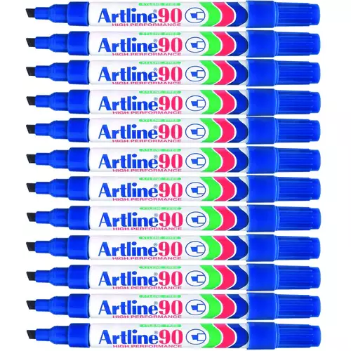 Artline 90 Permanent Marker Chisel 2-5mm Blue Box 12