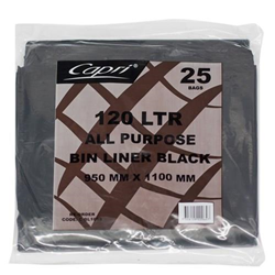 Bin Liners Flat Pack Black 120 Litres Ctn 100