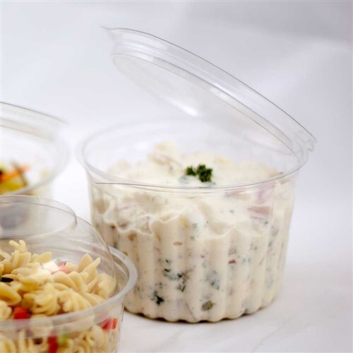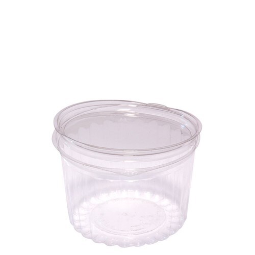 The Show Bowl Flat Hinged Lid Clear 16 oz (455 ml) is a practical and visually appealing food packaging solution, ideal for takeaway and food-to-go businesses. Manufactured from high-quality PET plastic, this clear bowl offers excellent transparency, allowing food to be attractively displayed while maintaining freshness and hygiene.