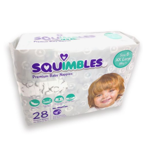 - Stay worry-free with Squimbles Nappies XX Large Size 6 Pack 28, designed for maximum comfort and absorbency.