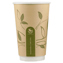 Paper Coffee Cup Biodegradable & Compostable Double Wall Leaves Kraft 16 Oz Ctn 500