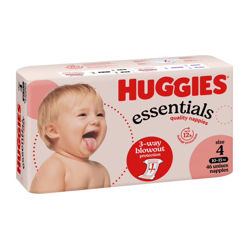 - Keep your toddler dry and comfortable with Huggies Nappies Essentials, Unisex Size 4, suitable for toddlers weighing 10-15kg.